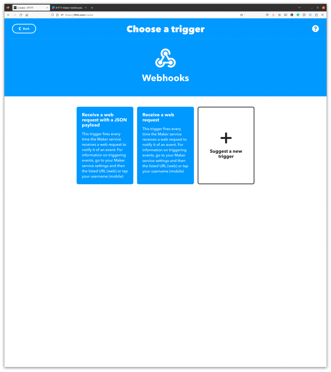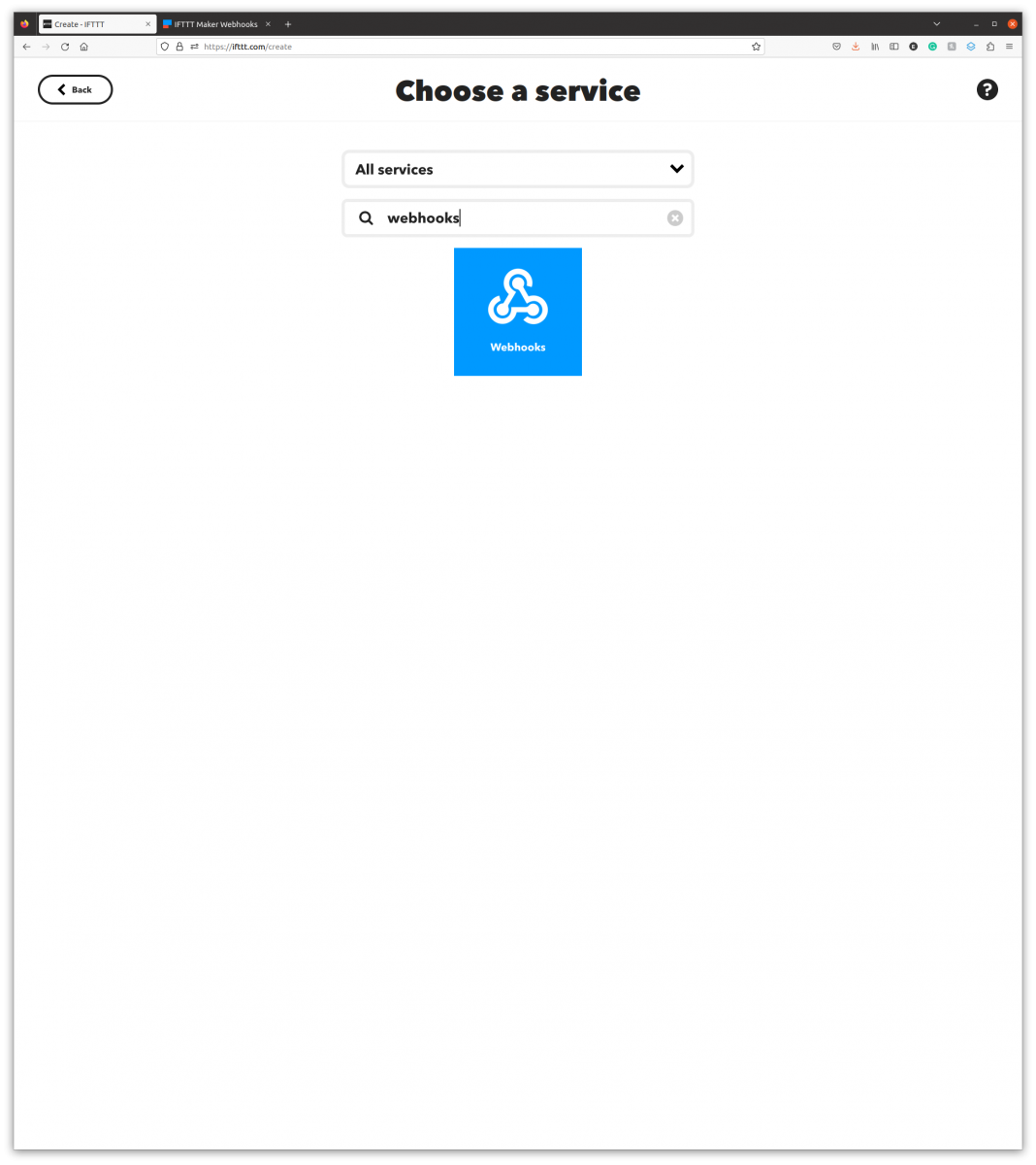 STEP 10: On the "Choose a service" page, search for webhooks, then click the "Webhooks" button.
