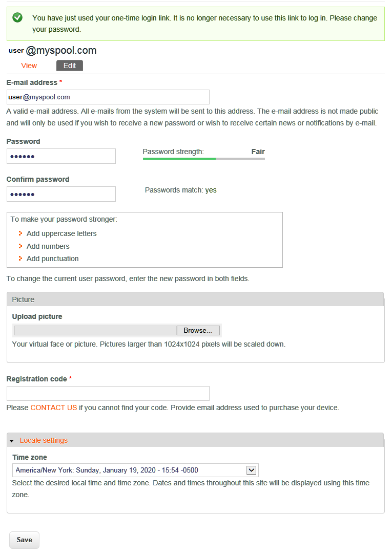 When you click on the link in the registration email, you will see a screen that looks like this: