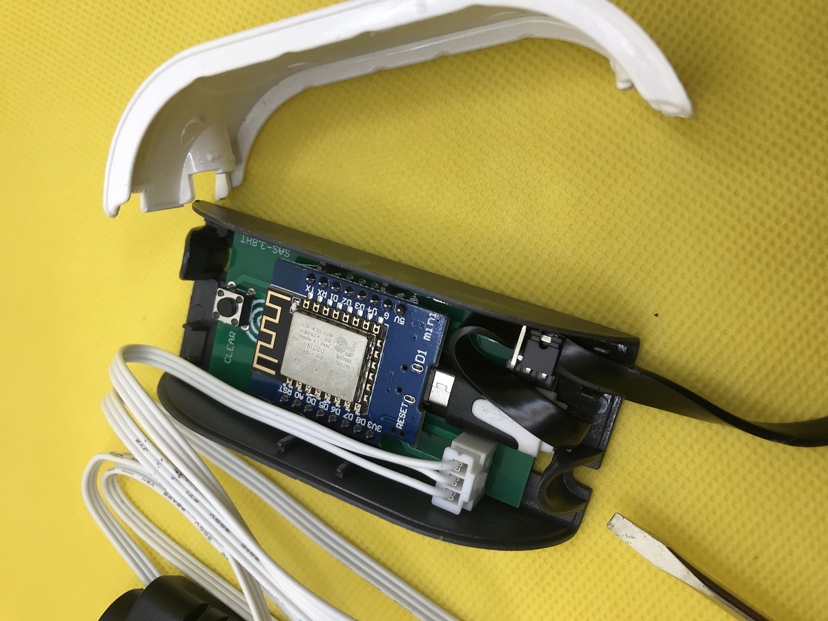 While keeping the CLEAR button depressed, plug your device in A/C. After a few seconds, you will see a steady blue light on the circuit board.