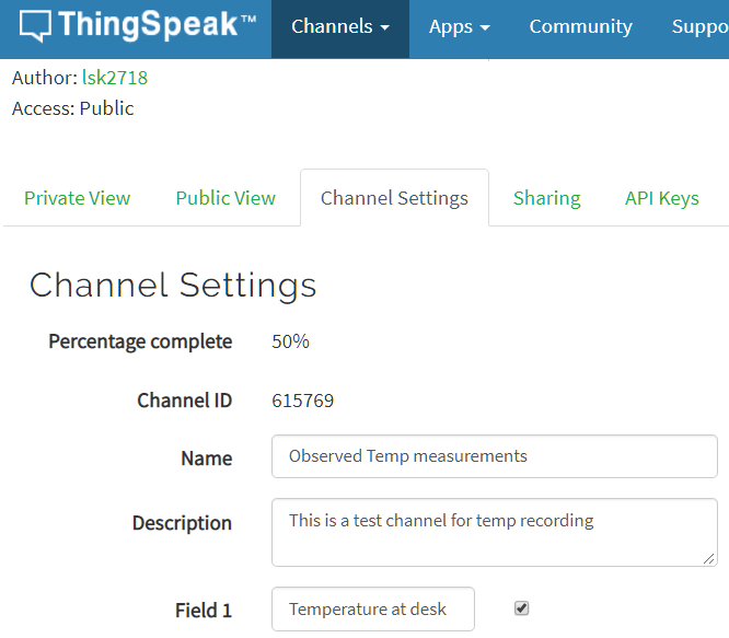 A Temperature sensor can send data for display and analysis to a ThingSpeak Channel. How do you set it up?