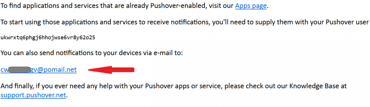 Note 1: if you already have a pushover account, you can find this email address in pushover app settings under pushover e-mail alias.